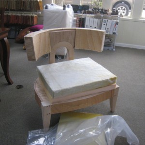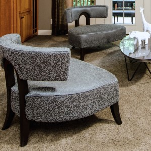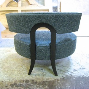 To create a pair of beautiful accent chairs for my client who loves modern furniture, but has a more transitional home, I created this modern interpretation of traditional style. Inspired by the classic Klismos chair I designed these chairs with a wide and generously proportioned seat with room to curl up. The back wraps around you far enough and at the perfect height so that you can rest your arms on it.The silky shine of the fabric and rich texture belie the fact that it is “contract grade”, durable enough for use in commercial spaces. Creating an original design starts with a sketch of the idea. Working closely with experts in furniture making and upholstery, a mock-up frame is built and then padded for a sit test where we refine as necessary and assure that the design is comfortable. Only after we are sure the client is satisfied with dimensions and cushion firmness, does the final frame get built with upholstery going on as the final touch. Made right here in Portland, these chairs will give a lifetime of enjoyment.