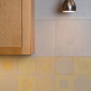 We began by absorbing the space of a little used side patio to expand the kitchen by about nine feet in length. This allowed space for a wider peninsula with a breakfast bar and space for kids to do their homework. The battered wood flooring was replaced with low-maintenance luxury vinyl plank, which has the look of wood, but is very durable to withstand the intensity of kids and pets. The existing kitchen cabinets were still in great shape with a classic design, so we reused most of them, added new hardware, and had additional matching cabinets custom made to expand the kitchen. In the original layout, a poorly placed pantry broke up the counter space, so it was moved over to one side. This provided an uninterrupted, functional workspace. Papers, homework, and office supplies received their own place in the kitchen with an office cabinet flanking the refrigerator, keeping the counters clutter-free. The finishing touch was the wide band of homemade ceramic tiles in the backsplash. This added the perfect touch of sunny color into the room.